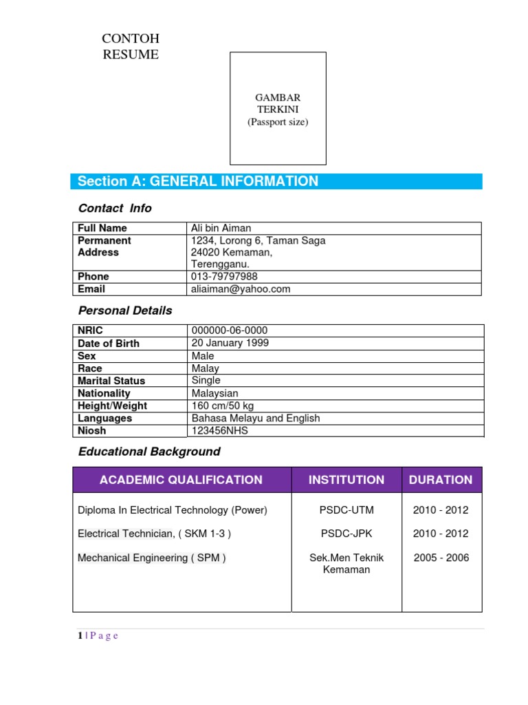 Contoh Resume Untuk Praktikal - Resume Lengkap Untuk Memohon Kerja Pelajar Latihan Industri. Ada ya orang cari cara sediakan.