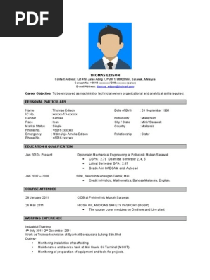 Let say 5 fan point. Contoh resume untuk latihan industri contoh 1 curriculum vitae personal details.